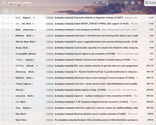 Slackだったりメールだったりで、CakePHPの更新情報を適当に眺めてたりするのですが。 ↓メールはこんな感じ 観測してるのは、cakephp/cakephp, cakephp/app, friendsofcake/awesome-cakephp 辺りです。 タイトル見て気になったものとかはチラっと見に行った…