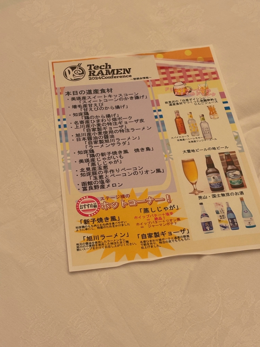 この記事は、2024年7月26日〜27日(前夜祭を含む)に行われたTechRAMEN 2024 Conferenceの参加記事です。(本当でしょうか?)